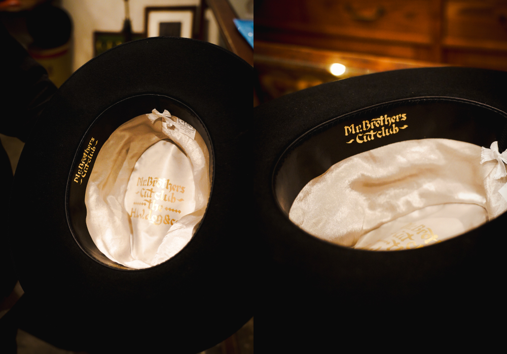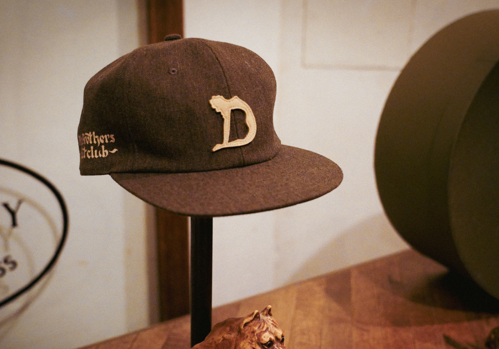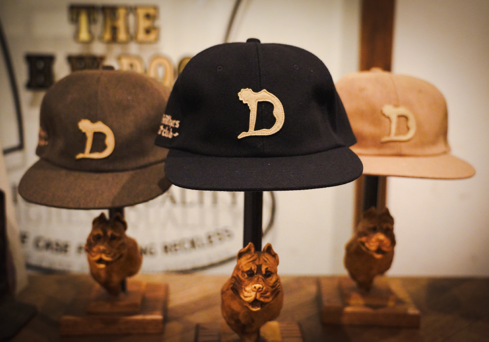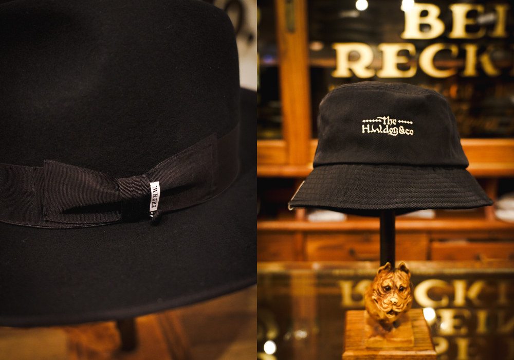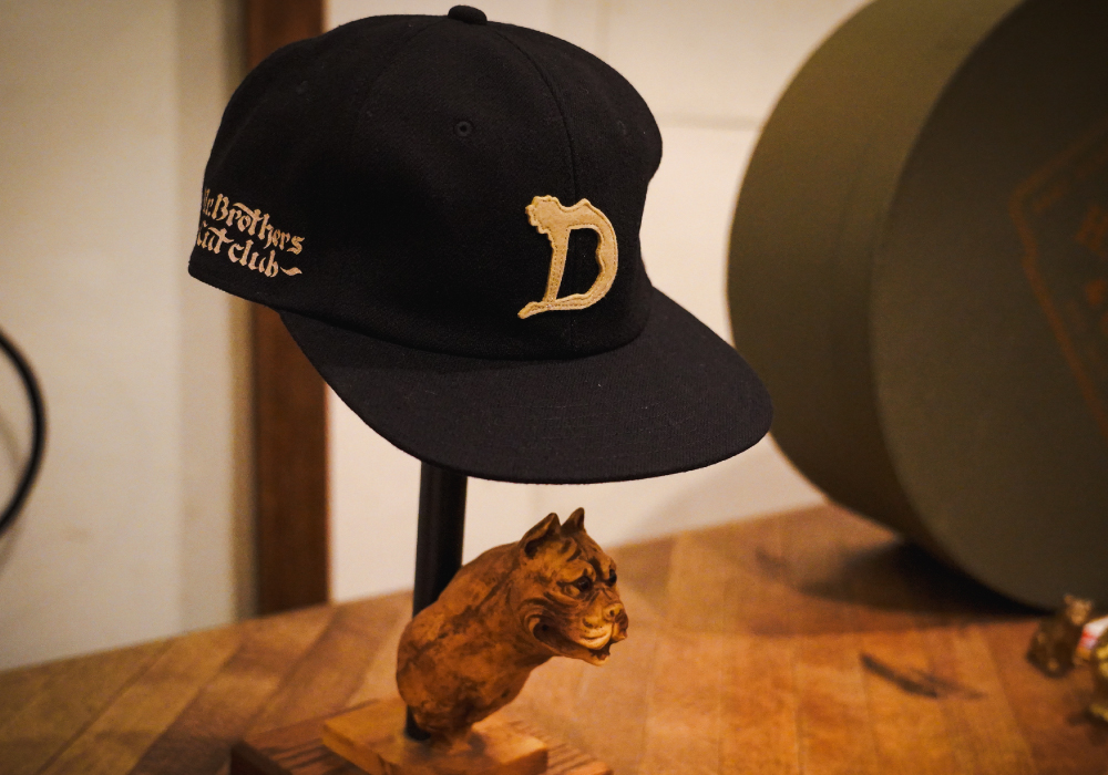 今回のコラボレーションでは、ベースボールが普及した1860年代のキャップを再現したTHE H.W.DOG&CO.のファーストモデルであり、レザーベルトのアジャスターで調整可能な定番のベースボールキャップ、バケツをひっくり返したような天井がフラットな形で、素材はヴィンテージ風に加工した光沢感のあるミリタリーツイルを使用したバケットハット、トップクラウンが谷状にへこんでいるセンタークリース型で、裏地にはサテン生地に箔プリントを施し、ポマードガードの付いた高級感のあるディテールを再現したウールフェルトハットの3型を展開。